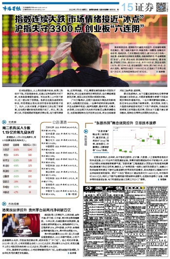 指数连续大跌 市场情绪接近“冰点” 沪指失守3300点 创业板“六连阴”