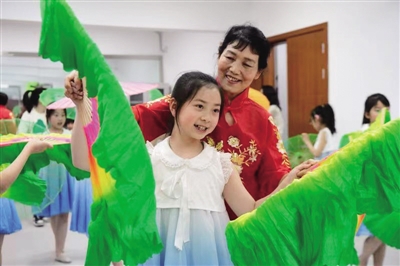 3月7日,合肥市瑶海实验小学联合三里街街道社居委开展“舞动春天·快乐‘三八’”活动,社区靓俪夕阳舞蹈队和学生们共同学习自编舞蹈《美丽合肥》。挥手、顿足、甩扇……喜庆的音乐,优美的舞姿,老少同乐迎接节日的到来。