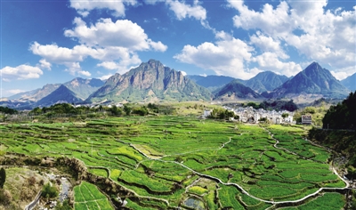 近日,我省气温持续升高,多地油菜花开始盛开。图为3月12日拍摄的绩溪县家朋乡美景,蓝天白云,青山绿水,美如图画,吸引不少游客前来打卡。