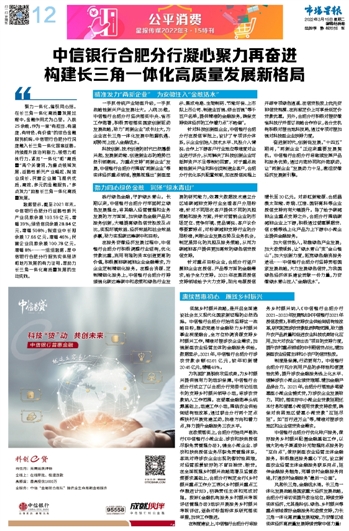 中信银行合肥分行凝心聚力再奋进 构建长三角一体化高质量发展新格局