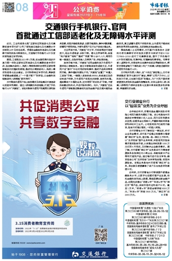 交通银行手机银行、官网 首批通过工信部适老化及无障碍水平评测