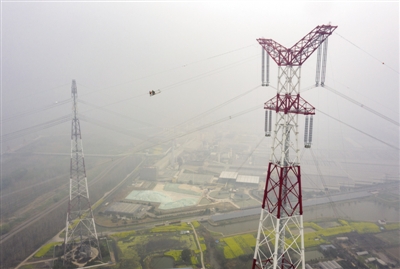 3月14日,白鹤滩-江苏±800千伏特高压直流输电工程安徽段跨越长江放线工程完成最后6根导线的展放,标志着特高压“白江线”安徽段长江大跨越线路贯通。白鹤滩-江苏±800千伏特高压直流输电工程是我国“西电东送”战略的重点工程,工程投运后,每年输送电力将超过312亿千瓦时。 ■ 新华社记者 刘军喜/摄