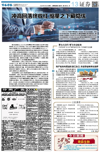 冲高回落终收红 缩量之下藏隐忧
