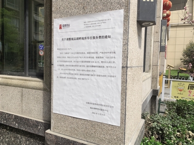 3月18日,记者来到了合肥恒泰城品湖畔小区。记者在小区南门外看到,物业在此处张贴了一张标记日期为3月9日的关于地下车库收费的相关通知。通知中表示,由于车库设施尚未完善,即日起车位服务费调整为80元/月,费用含人员工资、公共能耗等,收取的费用将被用于改善地库设备设施。在小区另一处出入口,物业张贴的一张小区停车场停车须知表示,地库采用一车一位收费,未租用的车辆禁止入内,违者后果自负。