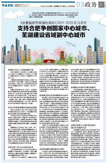 支持合肥争创国家中心城市、 芜湖建设省域副中心城市