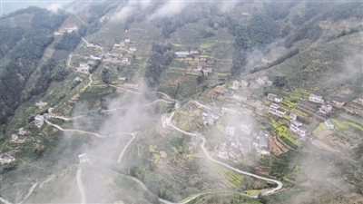 这是3月24日拍摄的安徽省黄山市歙县蜈蚣岭村。近日,安徽省黄山市歙县蜈蚣岭村的千亩梯地茶园迎来采摘季。蜈蚣岭村曾经是个贫困山村。20世纪60年代,为了摆脱山多地少带来的贫穷和饥饿,这里的人们凭着双手开山凿石、垒石造地,花了10多年的时间修建梯地茶园和用来种粮的梯田。如今,随着生态种植的推广,蜈蚣岭村的梯地茶园里种上生态有机茶,适宜的自然条件让这里的优质茶叶供不应求。2021年,蜈蚣岭村接待游客近5万人次,旅游收入超百万元,关于这片千亩梯地茶园的奋斗故事仍在延续。 ■ 新华社记者 张端/摄