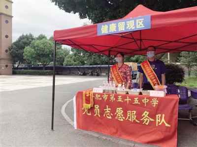 每年中考季,五十五中本部考点的“考生爱心加油站”就会成为一道靓丽的风景线,学校党员志愿服务队为考生提供一次性口罩、饮用水、备用文具等物品,为考生保驾护航、助力加油,缓解家长、学生的心理压力。2021年中考备考阶段,学校专门安排优秀教师,通过媒体线上直播公益讲座的方式,面向全市九年级学生,对中考复习和冲刺中遇到的重难点知识点进行指导,受到了家长的好评。