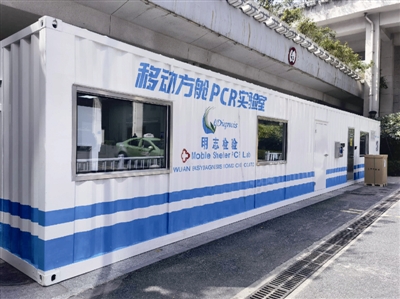 包河区疾控中心相关负责人介绍,移动方舱PCR实验室相当于一座可移动式核酸检测实验室,在必要时可实现实验室整体移动,可就近为重点场所重点人群开展核酸检测。