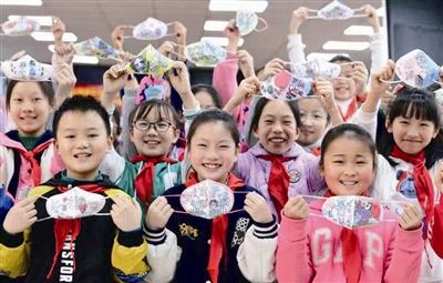 小学生创意口罩 助力疫情防控