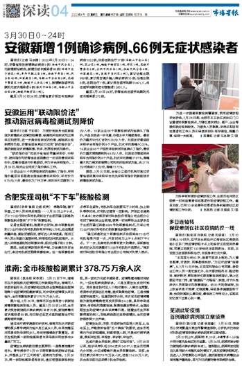 安徽新增1例确诊病例、66例无症状感染者