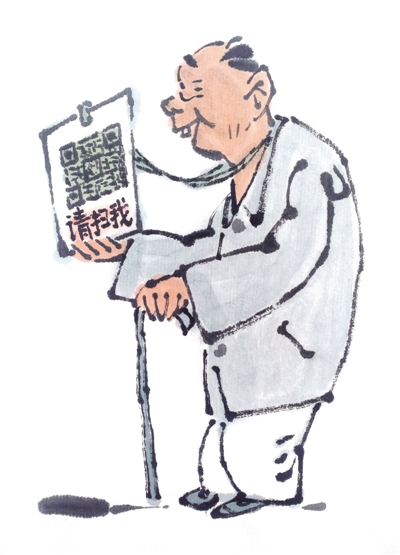 由于疫情防控需要,扫码出行成为标配。在出入公共场所时,人们需要用智能手机扫健康码、行程码、场所码等二维码。这是出于阻断疫情传播,精准追溯排查的考虑,广大公众也能够主动理解,自觉配合。不过,不少老年人没有智能手机,还有的虽然子女为其配备了智能手机,但并不懂得如何操作。对于这些老年人来说,“扫码难”成为横亘在出行和生活面前的现实难题。