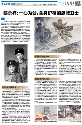 蔡永祥:一心为公,舍身护桥的忠诚卫士