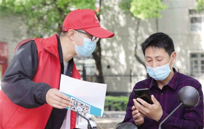 唐喆说,他所在的安徽省电子产品监督检验所是北苑村社区“红纽带”党建联盟单位。了解到社区疫情防控点多面多、人手不足的情况后,单位党组织主动向社区党委靠拢,安排了以党员为主的20人的志愿力量,支援社区疫情防控工作。唐喆介绍说,他的主要工作是守护小区人口,引导居民扫码测温,提醒居民做好个人防护,同时还需要解答居民或者商户的一些政策咨询。
