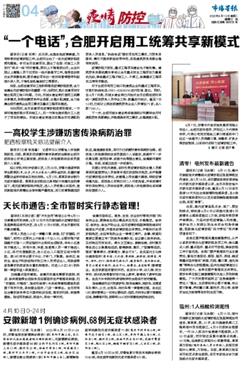 安徽新增1例确诊病例、68例无症状感染者