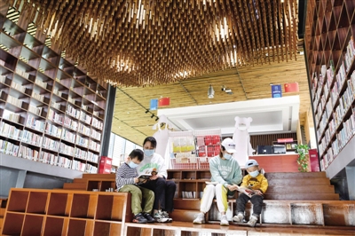 4月20日,读者在安徽省铜陵市滨江生态公园“码头书屋”阅读。
