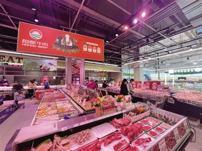 走进超市蔬菜区,“惠民菜篮子”工程仍然热闹。在0.99元自选蔬菜区里,毛白菜、四月慢、紫皮洋葱等家常蔬菜应有尽有。市场均价5元/斤的西红柿,超市内卖4.15元/斤;市场均价5.9元/斤的青椒,超市内卖4.89元/斤;市场均价3.16元/斤的冬瓜,超市内卖2.62元/斤;市场均价8.29元/斤的豆角,超市内卖6.88元/斤;仔鸡8.63元/斤、猪五花肉11.79元/斤、鸡蛋24.9元30枚……除了价格优惠,超市内肉蛋蔬菜供应十分充足,货架上满满当当。
