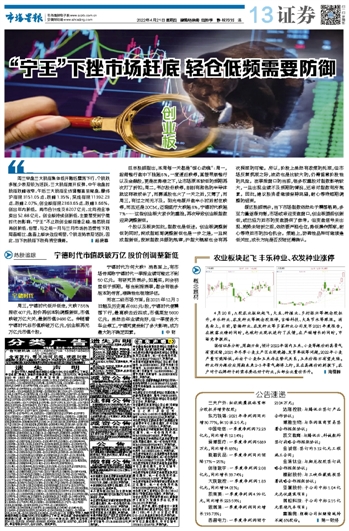 “宁王”下挫市场赶底 轻仓低频需要防御