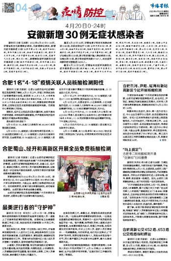合肥1名“4·18”疫情关联人员核酸检测阳性
