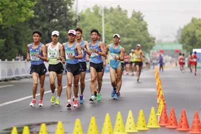 4月23日,2022年全国竞走大奖赛(第1站)暨竞走项目世锦赛&亚运会选拔赛在安徽省黄山市屯溪区开赛。图为运动员在比赛中。