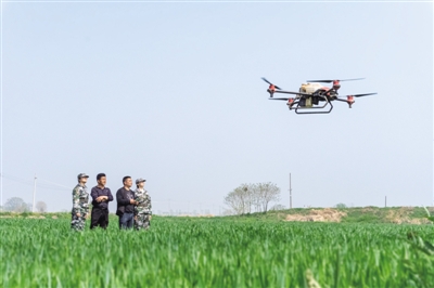 在滁州小岗村,种粮大户程夕兵使用无人植保机开展春防作业,青苗随风浮动,是小岗村对未来美好的向往……