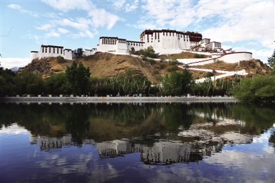 通过落实《拉萨市中心城区水系治理和生态修复规划(2018-2035年)》,西藏拉萨市逐步恢复历史水系,治理提升现有水系,远期将形成“两河、三廓、水成网、湖密布”的城市水系结构,实现城水相融,将拉萨市打造成为富有活力的“高原水城”。图为从龙王潭公园看布达拉宫。 ■ 新华社记者 觉果/摄