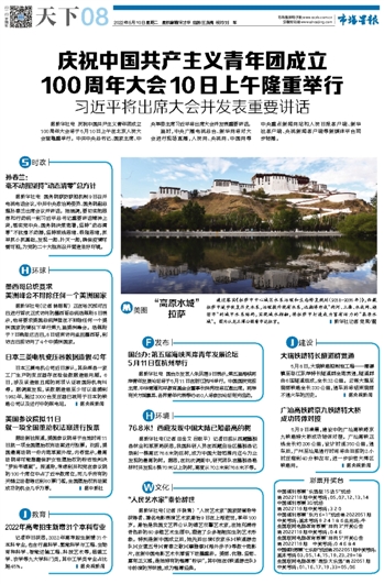 庆祝中国共产主义青年团成立 100周年大会10日上午隆重举行