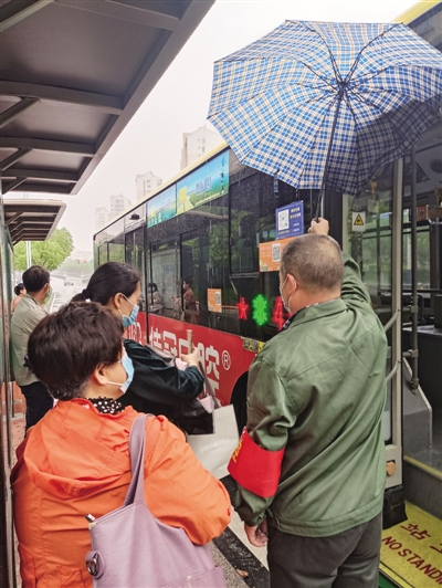 雨中出行给市民带来诸多不便。5月10日早上7时许,合肥市43路公交车驾乘员为扫码乘车人员撑起雨伞,细微之举体现人间温暖。
