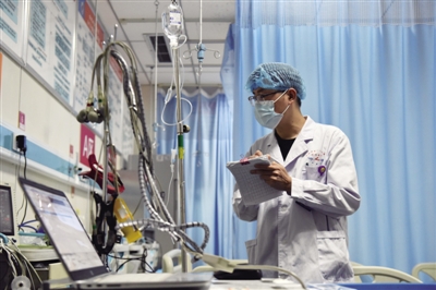 在胡爽刚刚进入医院的第二周,就遇到了一批食物中毒的患者。当时刚入科工作,对许多操作流程都不太熟悉,突然碰到这种事情的他有点慌乱。但是在老师的指导下,他有条不紊地对病人进行各种检查与护理,最终及时将他们送至住院部,让他们得到了快速有效的救治。那一刻站在抢救室指导胡爽的老师在他的心目中是发光的:“我也想成为像老师那样的人,面对抢救临危不乱,让病人及时得到救治。”给胡爽印象最深的还有一次抢救车祸导致心跳骤停的病人,病人在做完检查返回抢救室的时候突发呼吸心跳骤停,经过积极抢救,病人最终复苏并被转入重症监护室接受治疗。“病人家属满眼噙着泪水,一直重复着跟我们说‘谢谢’。那一刻,更加坚定了我从事护理行业的决心以及救死扶伤的信念。”胡爽说,虽然我们处在平凡的岗位,但对病人来说却意义非凡。