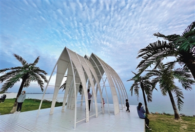 4 位于巢湖北岸的云水湾公园打造得颇有热带海边风貌,因此被合肥市民称为“小三亚”,成为网红打卡地。