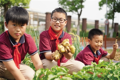 “3~6年级每个班都规划了一块劳动实验田,每年在春秋学期各开展一次播种节、收获节,并形成传统,固定为‘四周五节’的节日之一。”合肥市青年路小学科学老师、包河区综合实践活动课兼职教研员管建璐告诉记者,在播种节,各班可以根据自己的喜好上报农作物,学校统一购买、统一组织播种。收获节是孩子们特别期待的时候,收获完,学校还延伸了劳动实践活动,将蔬菜分给每个孩子,孩子们带回家,尝试用上这些蔬菜为一家人做一道美食。“洗菜、切菜、配菜、做菜,孩子们有了亲身劳动的成就感,同时学习了做菜的生活技能,传承了孝为先的中华美德。”