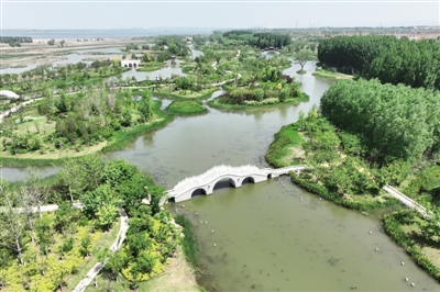 近年来,山西省长治市不断加强漳泽湖国家城市湿地公园生态环境治理、修复与保护工作,通过环境综合治理和园林景观建设,湿地公园生态环境焕然一新。如今,环境优美的湿地公园既是600多种野生动植物的栖息地,也成为市民及游人休闲的好去处。图为长治市漳泽湖国家城市湿地公园一角。 ■ 新华社记者 詹彦/摄