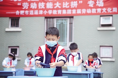 教育部日前发布《义务教育劳动课程标准(2022年版)》。今秋开学起,劳动课将正式成为中小学的一门独立课程。变废为宝“时装秀”“劳动教育文化周”,学生晒出在家拖地、洗碗、炒菜、整理房间的图片……连日来,合肥市庐阳区各中小学、幼儿园里,劳动教育场景频现。该区正积极引导辖区学生、幼儿参与劳动教育,以此更好地构建德智体美劳育人体系,落实立德树人根本任务。