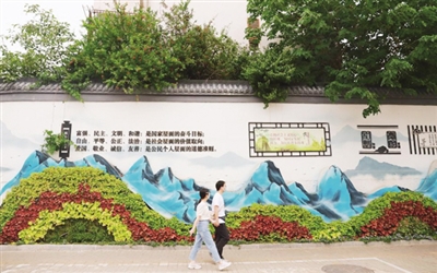 星报讯 近日,在合肥老城区城隍庙附近,青山连绵,峰峦叠嶂,一幅新奇秀美的绿色“山水图”在徽派风格墙壁上绵延开来,往来行人宛如走在青山绿水之中。