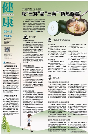 吃“三鲜”忌“三满”“防热避湿”