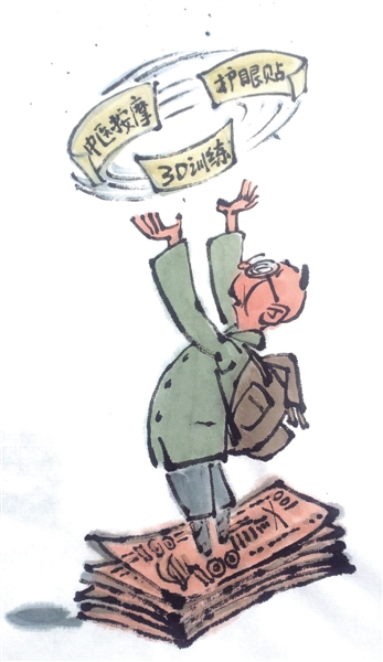 国际眼科科学院副主席、北京协和医院眼科主任医师赵家良指出,近视是一种屈光不正的状态,目前全球范围内没有治愈近视的方法,人一旦近视,便无法治愈。事实也一再证明,现在还没有一种药物或者一种手术能把近视治好。可是近年来,一些商家趁家长焦虑以治疗近视为由,推出了各种各样的产品和疗法,打出了“孩子的近视一贴就好”“用了这款近视矫正仪,孩子视力提升了”“不用做手术迅速摘掉眼镜”等广告。显然,这是在夸大其词进行虚假宣传。希望有关部门加大对近视广告的监管力度,对虚假宣传乃至诈骗要严厉打击,还治疗近视一片净土;也希望家长和学校协同增加学生户外活动、课外活动和体育活动时间,落实每天校内、校外各一小时,阳光体育一小时等体育活动要求,并努力培养孩子科学用眼、爱眼护眼的良好习惯,共同呵护好孩子的眼睛,让孩子都有一双明亮的眼睛和光明的未来。