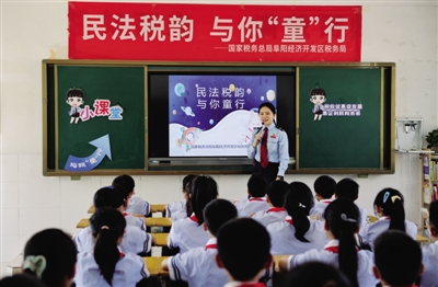 5月30日,国家税务总局阜阳经济开发区税务局的青年干部,前往申寨小学开展“民法税韵,与你童行”为主题的“税法宣传进校园”活动,让学生们了解税法。青年税务干部李苗苗用浅显易懂的语言、贴近生活的例子,向学生们介绍什么是税收、税收的作用、税收用在何处等税收知识,在向学生们普及税收在国民经济里起到的关键作用,强调税法的重要性,引导学生们理解“税收取之于民用之于民”的深刻意义,养成学税法、懂税法、守税法的良好习惯。