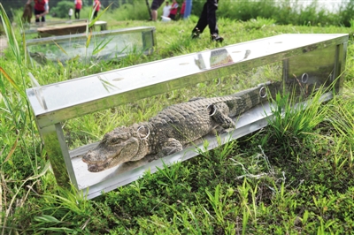 扬子鳄是我国特有的珍稀物种,国家一级重点保护野生动物。据介绍,为扩大扬子鳄野外种群,彻底摆脱极度濒危状态,2001年11月经原国家林业局批准启动“扬子鳄保护与放归自然工程”,通过将人工繁育的扬子鳄放归到野外的方式,逐步复壮野外扬子鳄种群,该工程为国家15个野生动植物重点拯救项目之一。