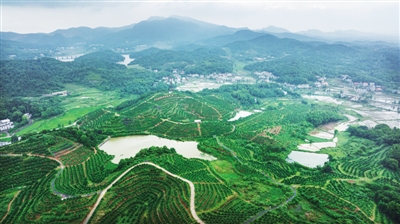 江西省芦溪县是“江南煤都”萍乡市的管辖县,长期的煤炭开采曾给当地留下废弃矿山的生态“欠账”。近年来,芦溪县推进废弃矿山修复工程,修复废弃矿山植被并推广脐橙种植等特色产业,实现废弃矿山的绿色转身。图为6月2日拍摄的芦溪县源南乡思古塘矿区的脐橙种植产业基地(无人机照片)。 ■ 新华社发 汪立新/摄