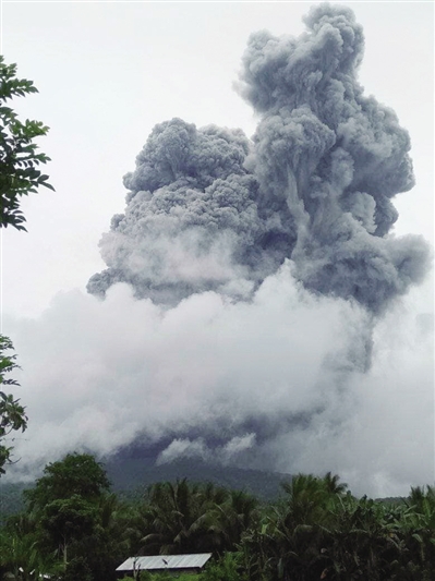 6月5日,位于菲律宾索索贡省的布卢桑火山突然喷发,菲律宾火山地震研究所将布卢桑火山的警戒等级升至一级。 ■ 新华社发(索索贡省新闻办公室供图)