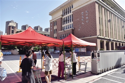 合肥四十六中南区考点,学生有序进入学校查看考场。 ■ 记者 周诚/图