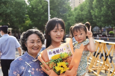 2 考试结束后,一家人开心合影。 ■ 周诚
