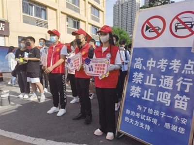 据悉,此次三里庵街道共组织50余名街居人员、青年志愿者参加志愿服务,并联系辖区爱心企业免费提供备考应急礼包、清凉折扇、饮用水等物资。
