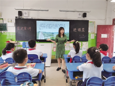 为了让同学们知晓生态文明建设的重要性,了解人与自然是生命共同体,人类必须尊重自然、顺应自然、保护自然。2022年6月6日,合肥市和平小学东校党史宣讲员走进四年级课堂,宣讲《习近平新时代中国特色社会主义思想学生读本》(高年级版)第10讲《绿水青山就是金山银山》。宣讲员围绕全国首个实践“绿水青山就是金山银山”理念的生态旅游、乡村度假景区余村以及创造变荒原为林海、让沙漠成绿洲的塞罕坝的事迹,引导同学们要像保护眼睛一样保护生态环境,像对待生命一样对待生态环境,多干保护自然、修复生态的实事,多做治山理水、显山露水的好事。