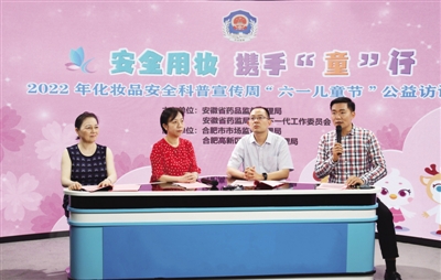 5月25日,安徽省暨合肥市2022年化妆品安全科普宣传周启动仪式采用线上直播形式进行。