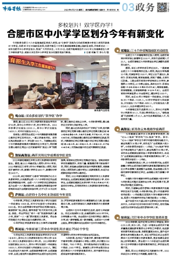 合肥市区中小学学区划分今年有新变化