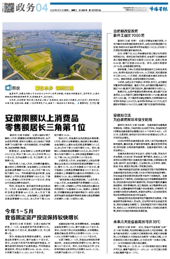 安徽限额以上消费品 零售额居长三角第1位