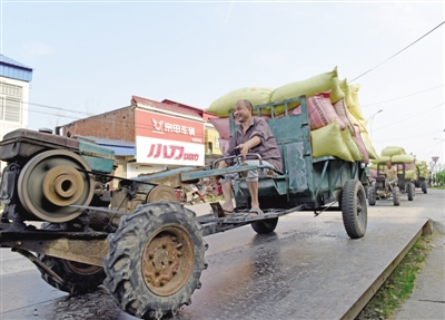 6月21日,淮南市寿县堰口镇江黄村村民将储存的稻谷销售给丰乐米业有限公司。又是一年丰收季,淮南市通过科技强农,土地大托管、高标准农田建设等多种举措,抓好粮食生产。