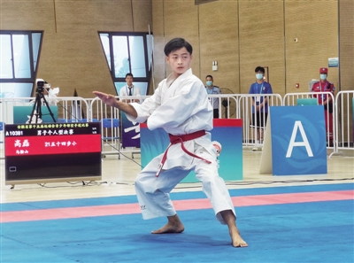 星报讯 6月23日,安徽省第十五届运动会青少年部空手道比赛在滁州来安县举行。在男子甲组个人型赛项目决赛中,马鞍山队高磊战胜队友彭泽文,夺得金牌,这也是安徽省第十五届运动会自开赛以来产生的首枚金牌。
