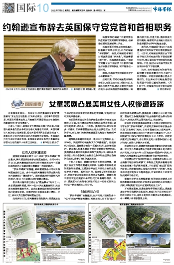 约翰逊宣布辞去英国保守党党首和首相职务