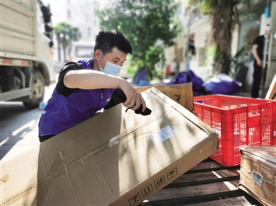 4 7月11日,一身短袖短裤,披上菜鸟驿站的工作服小马甲,郭政准时来到位于合肥市西园新村小区的中通快递网点,开始分拣快递。 ■ 孙雨静 周诚